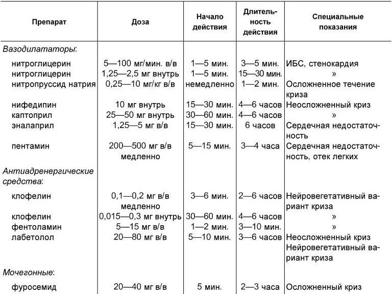 Терапия гипертонических кризов. Появление у больного гипертонической болезнью клинической картины гипертонического криза является основанием для проведения неотложной терапии, направленной на снижение артериального давления. При этом выбор лекарственного препарата и темпы снижения артериального давления будут определяться двумя факторами: с одной стороны – особенностями течения криза (нейровегетативный, отечный, судорожный), с другой – наличием и выраженностью поражения органов-мишеней (проявления сердечной, цереброваскулярной и почечной недостаточности и др.). Наряду с этим на экстренность лечения будет влиять наличие и характер осложнений гипертонического криза (гипертоническая энцефалопатия, эклампсия, мозговой инсульт, острая коронарная и сердечная недостаточность, расслаивающая аневризма аорты).