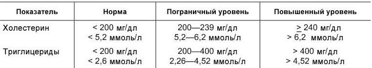 К числу биохимических факторов риска развития атеросклероза относится и гипертриглицеридемия. Поэтому принято выделять нормальные, пограничные и высокие значения холестерина и триглицеридов (табл. 1.7).