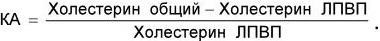 Степень этих нарушений оценивается различными коэффициентами атерогенности. Наиболее часто используется формула, предложенная А. Н. Климовым. Коэффициент атерогенности (КА) рассчитывается следующим образом: