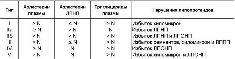 С учетом содержания в крови общего холестерина, холестерина липопротеидов низкой плотности и триглицеридов Фредриксоном была предложена классификация гиперлипидемий, принятая ВОЗ (табл. 1.8). Наиболее атерогенным и часто встречающимся является II тип гиперлипопротеидемии, что в значительной мере обусловлено преимущественным увеличением в плазме концентрации холестерина липопротеидов низкой плотности.