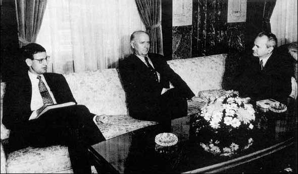 Слободан Милошевич и международные посредники (слева – Карл Билдт)