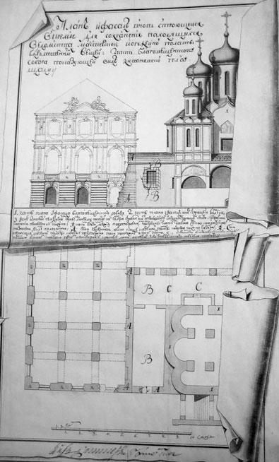 Д. В. Ухтомский. Проект галереи Оружейной палаты. План и фасад