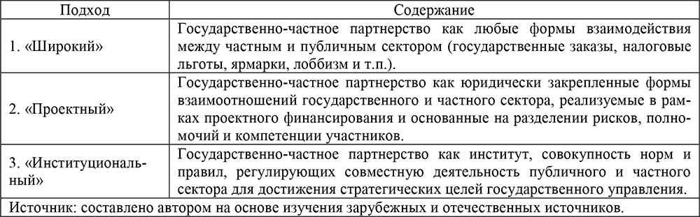 Таблица 1. Подходы к определению государственно-частного партнерства