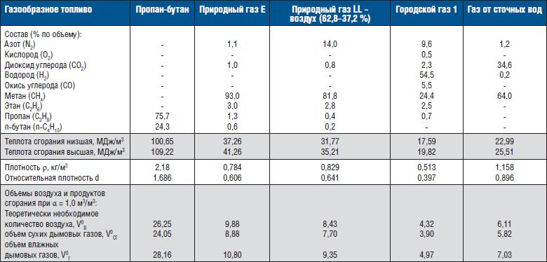 Таблица 3. Характеристики некоторых видов газообразного топлива, используемых в Европе