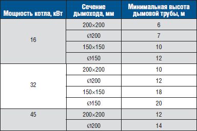 При выборе твердотопливного котла можно руководствоваться табл. 5, в которой приведена ориентировочная высота дымовой трубы, в зависимости от ее внутренних размеров и мощности котла.