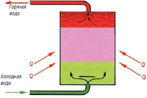 В емкости теплообменника нагреваемая бытовая вода находится внутри сосуда неподвижно в течение всего времени нагрева (происходит лишь гравитационное перемешивание).