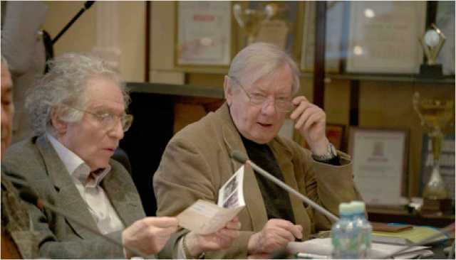 Справа: ведущий симпозиума проф. Виктор Лисакович, справа: доктор искусствоведения Виктор Листов (выступает)