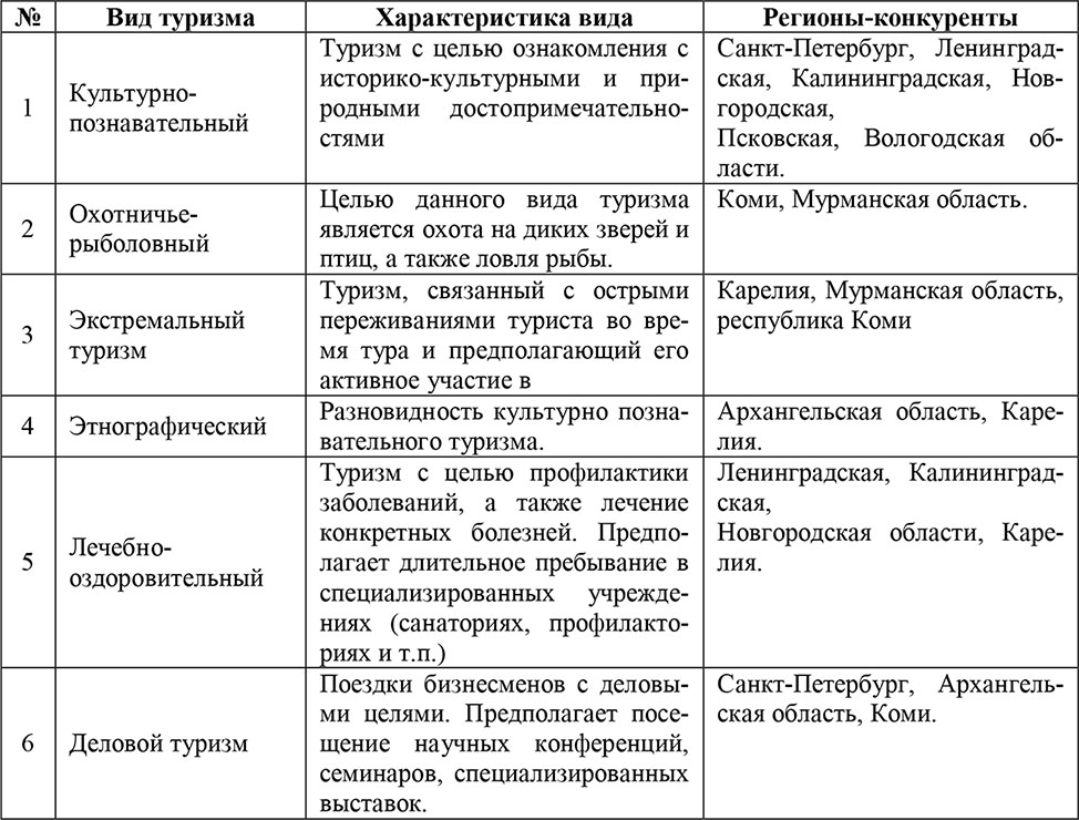 Сравнительная характеристика регионов Северо-Западного федерального округа РФ в отношении развития видов туризма