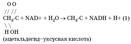NAD+ принимает на себя электроны от субстрата окисления (в частности, от ацетальдегида) и передает их по цепи переносчиков кислороду, что сопровождается генерацией энергии, запасаемой в виде АТФ (аденозинтрифосфат). Этот процесс, называемый биологическим окислением, протекает в митохондриях клеток. Цепь переносчиков электронов состоит из NAD, ФАД (флавиновый фермент), кофермента Q (убихинон), а также цитохромов: b, cl, с и а.