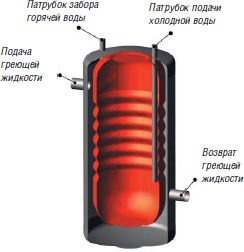 Котлами со встроенным теплообменником следует считать котлы, в которых бак или змеевик с бытовой водой помещены внутрь емкости с теплоносителем системы отопления.