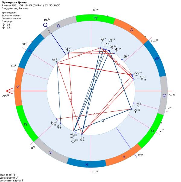 Например, принцесса Диана рискнула стабильностью ЮУ во 2-м доме в Водолее во имя любви и личного счастья по СУ во Льве в 8-м доме, развелась также по 8-му дому, но, видимо, она еще недостаточно укрепила фундамент ЮУ, поэтому СУ повел себя с ней жестоко.