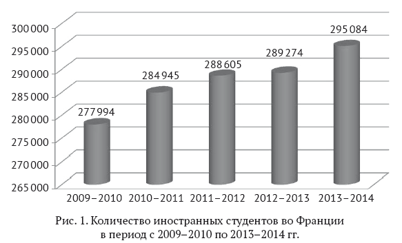 Рис. 1. Количество иностранных студентов во Франции в период с 2009–2010 по 2013–2014 гг.