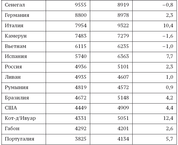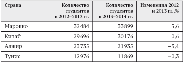 Таблица 2. Страны, из которых во Францию прибыло наибольшее количество иностранных студентов, 2012–2014 гг.