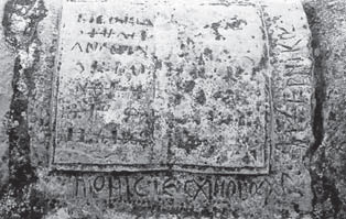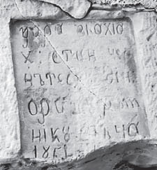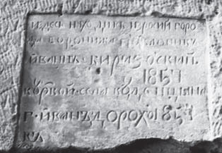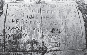 Рядом на том же камне надпись почти что вся сбитая, предположительно на болгарском языке.
