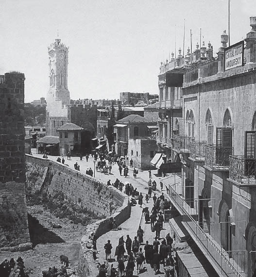 «Гостиница находится на ул. Давида, в одном из самых элегантных кварталов Иерусалима, поблизости от Яффских ворот. Совсем рядом находится огромный восточный базар, англо-палестинский банк, немецкий банк (“Фрутигер”) и австрийская почта. Гостиница располагается прямо напротив Башни Давида… Здание – трехэтажное; состоит из цокольного этажа и двух жилых этажей. На первом этаже – трапезная, 19 × 9 м. Комнаты, окнами выходящие на фасад, – очень просторные и имеют выход на балконы с прекрасным видом на город и ул. Давида. На втором этаже – гостевые комнаты и большой салон для деловых встреч и музыкальных вечеров, а также одна семейная “свита”. Из окон салона открывается вид на восток, на Храмовую гору, на Масличную гору, на Иорданскую долину и Моавский хребет. Но нечто особое – это огромная терраса на крыше гостиницы, находясь на которой осознаешь смысл библейских слов: “Возведи очи твои и с места, на котором ты теперь, посмотри к северу и к югу, и к востоку и к западу” (Быт. 13:14). Вид с этой крыши – один из самых уникальных в Иерусалиме. Мебель в номерах и салоне – весьма удобная. Кухня – европейского стиля и абсолютно кошерная. Хозяева гостиницы – одни из самых уважаемых горожан, пользующиеся большой симпатией со стороны иерусалимцев».[52]