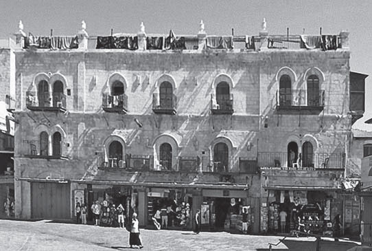 Посетители Старого Города, направляющиеся от Яффских ворот по ул. Давида, минуя одноименную цитадель, к другим иерусалимским достопримечательностям, не могут не пройти мимо этого выразительного монументального здания с северной стороны улицы. Трехэтажный дом возведен в свойственном для иерусалимской архитектуры второй половины XIX века «европейском штиле», и ему присущи всякие замечательные «архитектурные излишества», такие как, например, зубчатые арки над окнами с использованием декоративного орнамента, называемого «собачьи клыки» (dogtooth),[40] или каменные урны-вазоны на крыше.