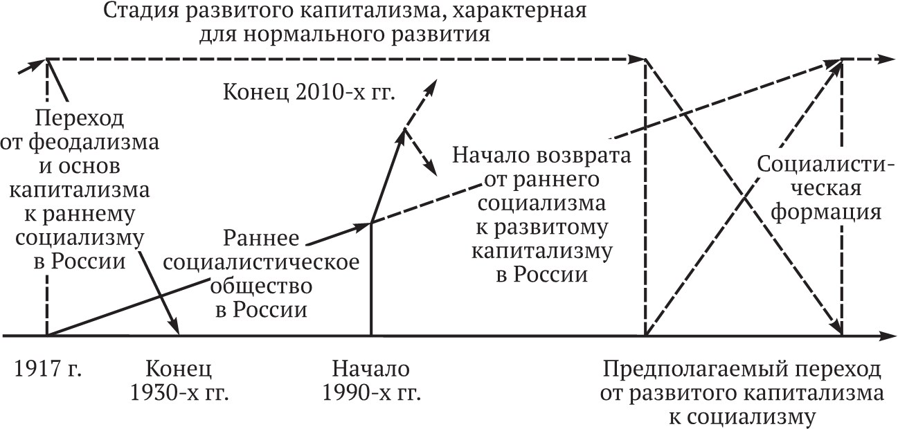 В России начала ХХ в. нормальное развитие капитализма оказалось невозможно в результате противодействия развитых капиталистических стран, объединившихся в систему государств, превращающих все остальные страны в колонии или полуколонии, и влияния мировой войны46. При политической слабости российской буржуазии и в указанных международных условиях переход России к социализму стал жизненно необходим. В результате в 1920-е – 1930-е гг. большевикам в России пришлось решать исторические задачи, относящиеся к завершению перехода от феодализма к капитализму: индустриализация, переход к крупному машинному производству в сельском хозяйстве, ликвидация неграмотности, переход к всеобщему начальному образованию. При решении этих грандиозных задач с неизбежностью совершались многочисленные ошибки и приносились огромные социальные жертвы.