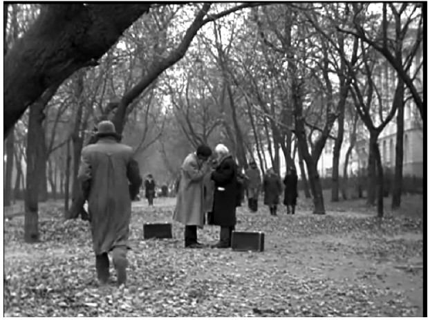 Рис. 1.1. Двое бывших заключенных ГУЛАГа узнают друг друга по одинаковым чемоданам. Кадр из фильма «Холодное лето пятьдесят третьего…» (Александр Прошкин, 1987)