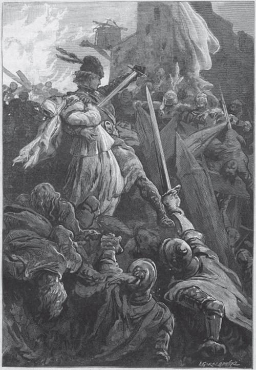 Но настоящее художественное воплощение Крашевским истории замка Пилены и князя Маргитиса было осуществлено в историческом романе «Кунигас»[226]. Это произведение впервые было опубликовано в 1882 г., а иллюстрации к изданию подготовил широко известный в то время график Михал Эльвиро Андриолли (1836–1893). Эта серия иллюстраций, выполненная в романтической художественной традиции, стала классической и впоследствии неоднократно воспроизводилась[227] (Ил. 3). Во второй половине XIX в. Крашевский стал одним из самых популярных авторов в России, а перевод «Кунигаса» появился в Петербурге в 1899 г. и был переиздан во время Первой мировой войны[228].