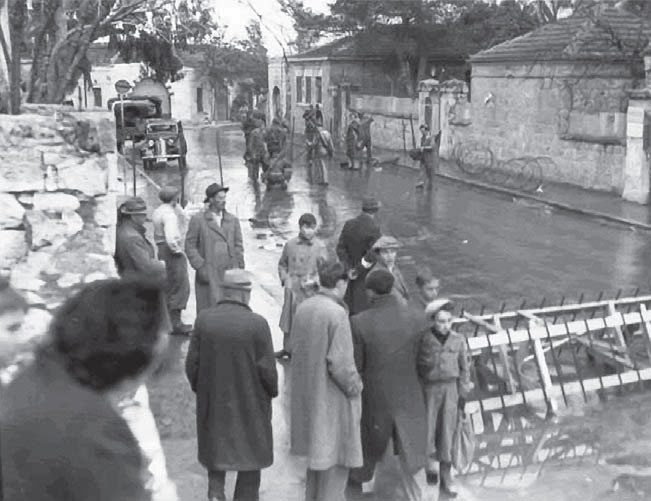 За несколько дней до ухода англичан обстановка в Иерусалиме накалилась до предела, все готовились к войне. По улицам ходили вооруженные добровольцы, строились заграждения, копались траншеи, повсюду заготовлялись и складывались песочные мешки.[84]