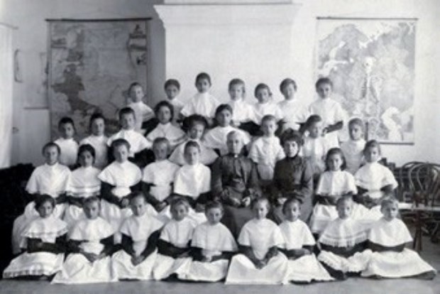 Тираспольская женская гимназия входила в систему министерства народного просвещения. Обучались в гимназии представительницы всех сословий. Обучение было платным и стоило в подготовительном классе 35 руб. в месяц, в 1, 2, 3, 4 классах – 45 руб., в 5, 6, 7 классах – 65 руб., а в 8 классе – 120 руб. Гимназистки (рис. 2) носили форму зеленого цвета, правда, передники у них были такие же белые и такой же приблизительно формы, как и в советское время [2]. Учебники гимназистки приобретали централизованно, при этом допускались только учебники, одобренные ученым комитетом, а канцелярские принадлежности закупали в писчебумажном магазине «Образование», расположенном на Покровской улице. в собственном доме Р. Гольденталя. Надо сказать, что к гимназисткам предъявлялись очень высокие моральные принципы. По воспоминаниям бывших учениц, начальница гимназии О.А. Берестнева часто ездила по городу в пролетке или карете, зимой в санях и следила за тем, чтобы ученицы не появлялись в общественных местах после девяти вечера [4, с. 7].