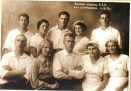Были открыты следующие факультеты: механико-математический, агробиологический, лингвистический. В первом году обучались 123 студента. Преподавание велось на молдавском, украинском и русском языках. По социальному составу характеристика студентов, принятых в 1929/1930 учебном году, была такова: батраков – 2, членов комитета деревенской бедноты – 46, бедняков – 16, середняков – 6, других – 3 человека. Что касается демографического признака – из 73 человек: мужчин – 50, женщин – 23 [3, с. 6]. Третью часть всех студентов составляли женщины, что указывает на широкое вовлечение женщин в профессионально-ориентированный образовательный процесс. В некоторых группах количественное соотношение мужчин и женщин было равным, о чем можно судить по сохранившейся в музее Приднестровского Государственного Университета имени Т.Г. Шевченко фотографии студентов факультета естествознания (рис. 3), 1936 г.