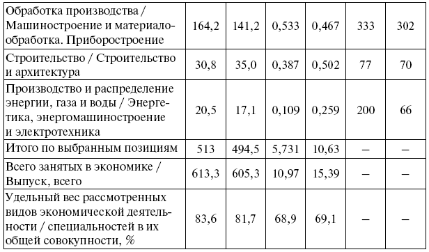 При условии избыточного выпуска специалистов экономических специальностей наблюдается недостаточный прирост выпуска специалистов для производства, системы образования и здравоохранения, сельского хозяйства, строительства и др. Для обоснования этого вывода приведем следующие данные.