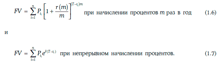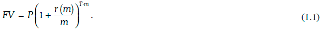 Предположим, что денежная сумма Р инвестирована на Т лет под годовую процентную ставку r(m) при начислении процентов m раз в год. Тогда будущая стоимость (future value) инвестиции может быть найдена следующим образом: