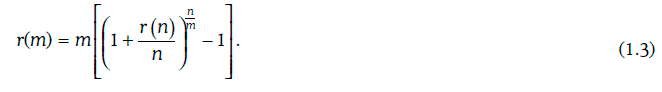 В частности, годовые процентные ставки r(m) и r(n) при начислении процентов m и n раз соответственно оказываются эквивалентными тогда и только тогда, когда