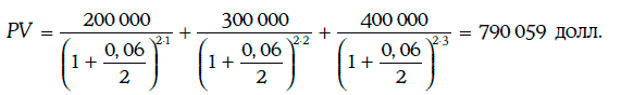 Приведенная стоимость потока денежных платежей определяется в виде суммы приведенных стоимостей платежей, образующих этот денежный поток.
