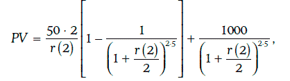 Доходность к погашению (yield to maturity) облигации с полугодовыми купонами является решением уравнения: