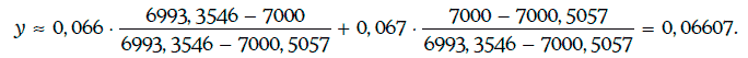 Заметим, что P(0,066) = 7000,5057 > 7000; P(0,067) = 6993,3546 < 7000. Значит, можно считать, что α2 = 0,066, а β2 = 0,067.