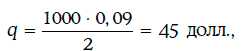 В данном случае f = 0,09, А = 1000 долл., m = 2. Значит,