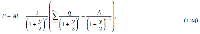 w – отношение числа дней между расчетной датой и очередным купонным платежом к числу дней в купонном периоде.