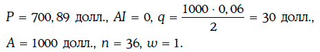 В данном случае А = 100 долл., q = 5 долл., r = 0,07, n = 12.