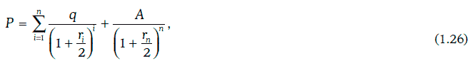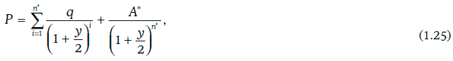Так как купонная облигация и портфель соответствующих облигаций с нулевыми купонами характеризуются одинаковыми потоками платежей, то должны совпадать и их цены. Следовательно, зная внутренние доходности облигаций с нулевыми купонами, можно найти цену купонной облигации.