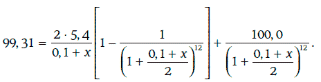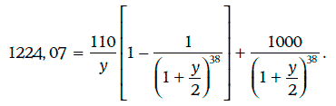 Доходность к погашению данной облигации должна удовлетворять следующему уравнению: