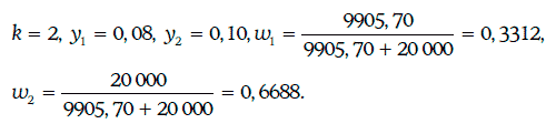yП = 0,3312 • 0,08 + 0,6688 • 0,10 = 0,0934, т. е. 9,34 %.