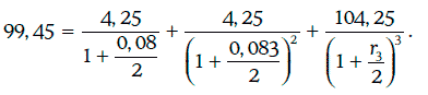 3. Спот-ставку на 1,5 года будем искать с помощью третьей облигации, зная уже найденные спот-ставки r1 и r2.
