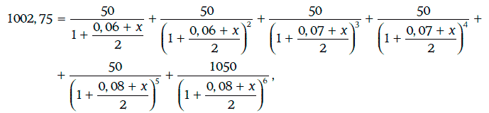 Решив уравнение, получим, что у = 0,0858. Таким образом, доходность к погашению составляет 8,58 %.