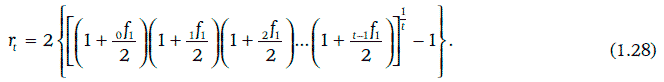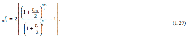 rn+t – внутренняя доходность облигации с нулевым купоном, погашаемой через n + t полугодовых периодов;