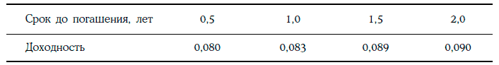 Набор внутренних доходностей облигаций с нулевыми купонами, выпущенных эмитентами одного и того же кредитного рейтинга, называют временной структурой процентных ставок (term structure of interest rates).