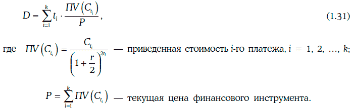 Если требуемая доходность при начислении процентов дважды в год равна r, то дюрацией Маколея (Macaulay duration) данного финансового инструмента называется величина