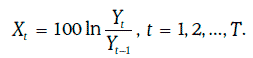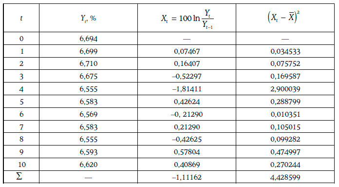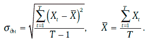 Случайная величина Xt представляет собой натуральный логарифм относительного изменения этого показателя за один день, выраженный в процентах. Тогда дневную волатильность данного показателя можно оценить следующим образом: