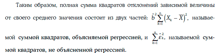Отношение суммы квадратов, объясняемой регрессией, к полной сумме квадратов называют коэффициентом детерминации и обозначают R2. Таким образом,