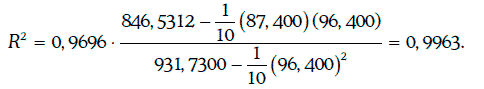 В данном случае коэффициент детерминации может быть найден следующим образом:
