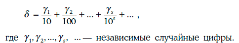 Случайная величина γ, принимающая 10 значений: 0, 1, 2, 3, …, 9 с одинаковой вероятностью, называется случайной цифрой.