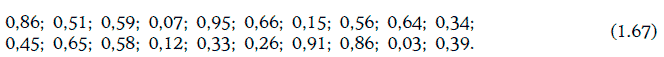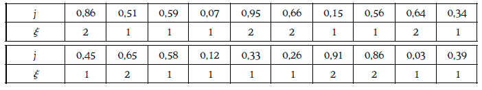Значения этой случайной величины, приписываемые случайным числом из последовательности (1.67), приведены ниже: