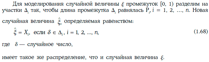 Равенство (1.68) позволяет каждому случайному числу приписать определенное значение случайной величине ξ. Такой процесс приписывания значений случайной величине ξ часто называют разыгрыванием этой случайной величины.