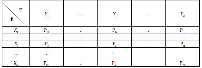 Рассмотрим две случайные величины ξ и η и предположим, что когда случайная величина ξ принимает значения X1, X2…., Xn, то случайная величина η принимает соответственно значения Y1, Y2…., Yn.